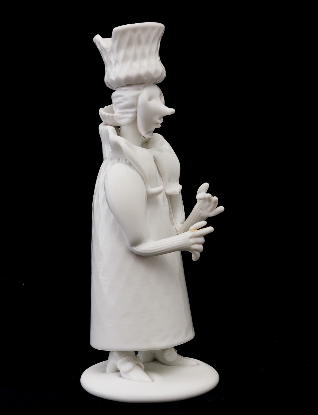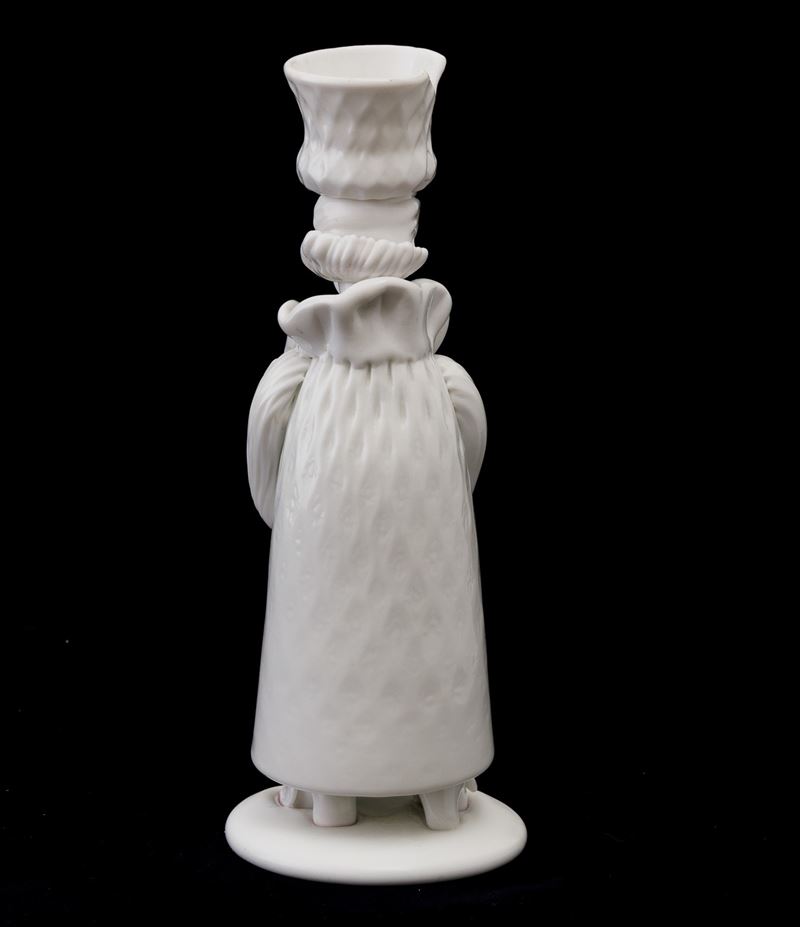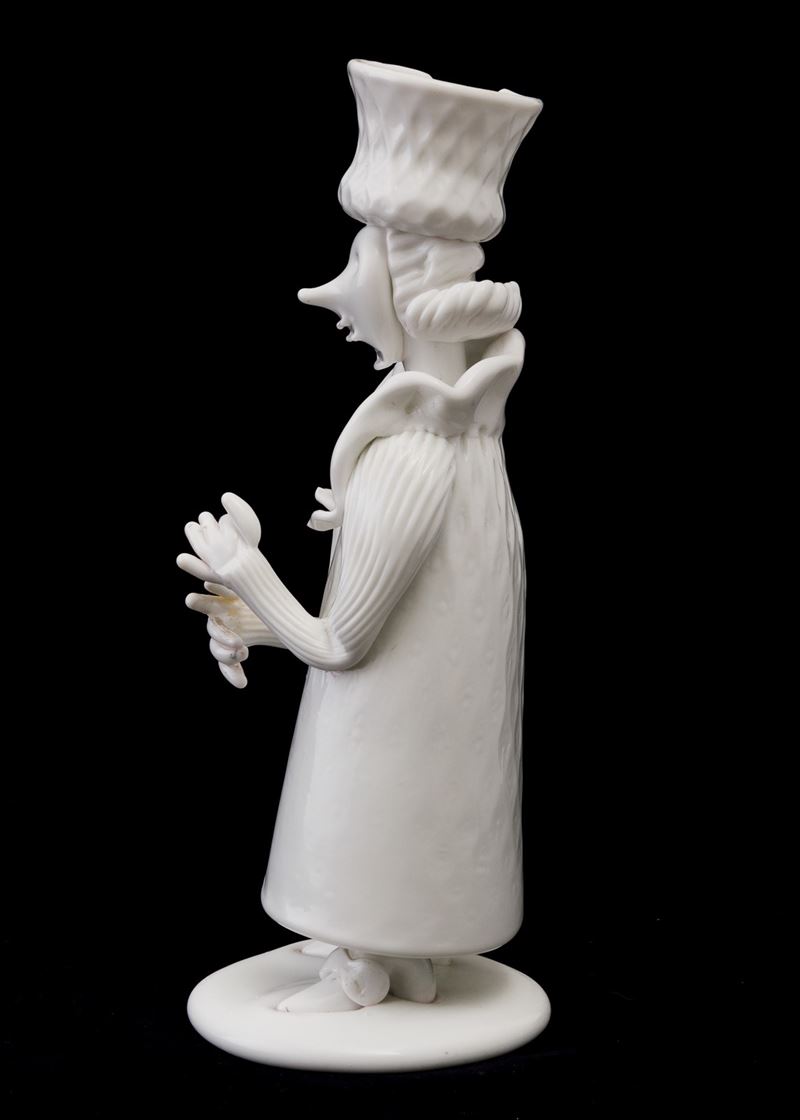 A Lattimo glass figure from the Grotteschi series. Defects and restored part
