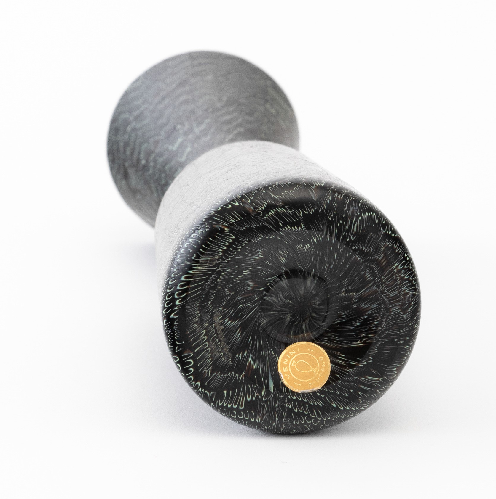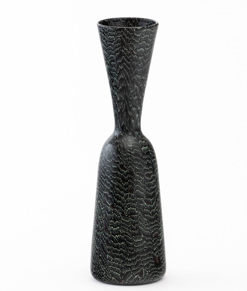 A rare glass vase with a murrine decor. Acid-etched signature Venini Murano Italia and old label