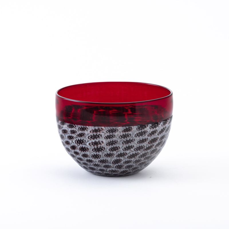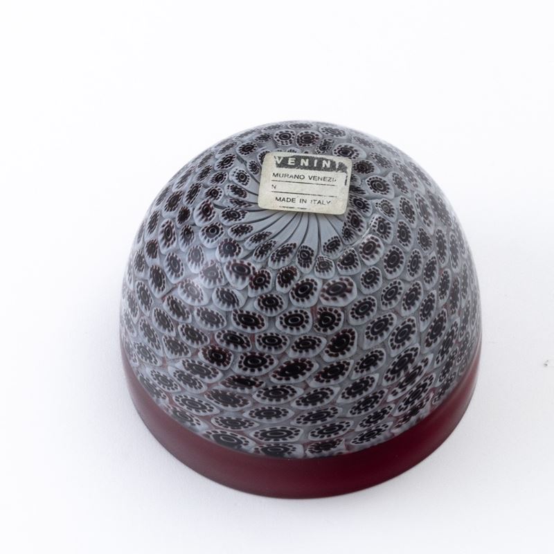 A glass bowl with murrine. Old Venini label