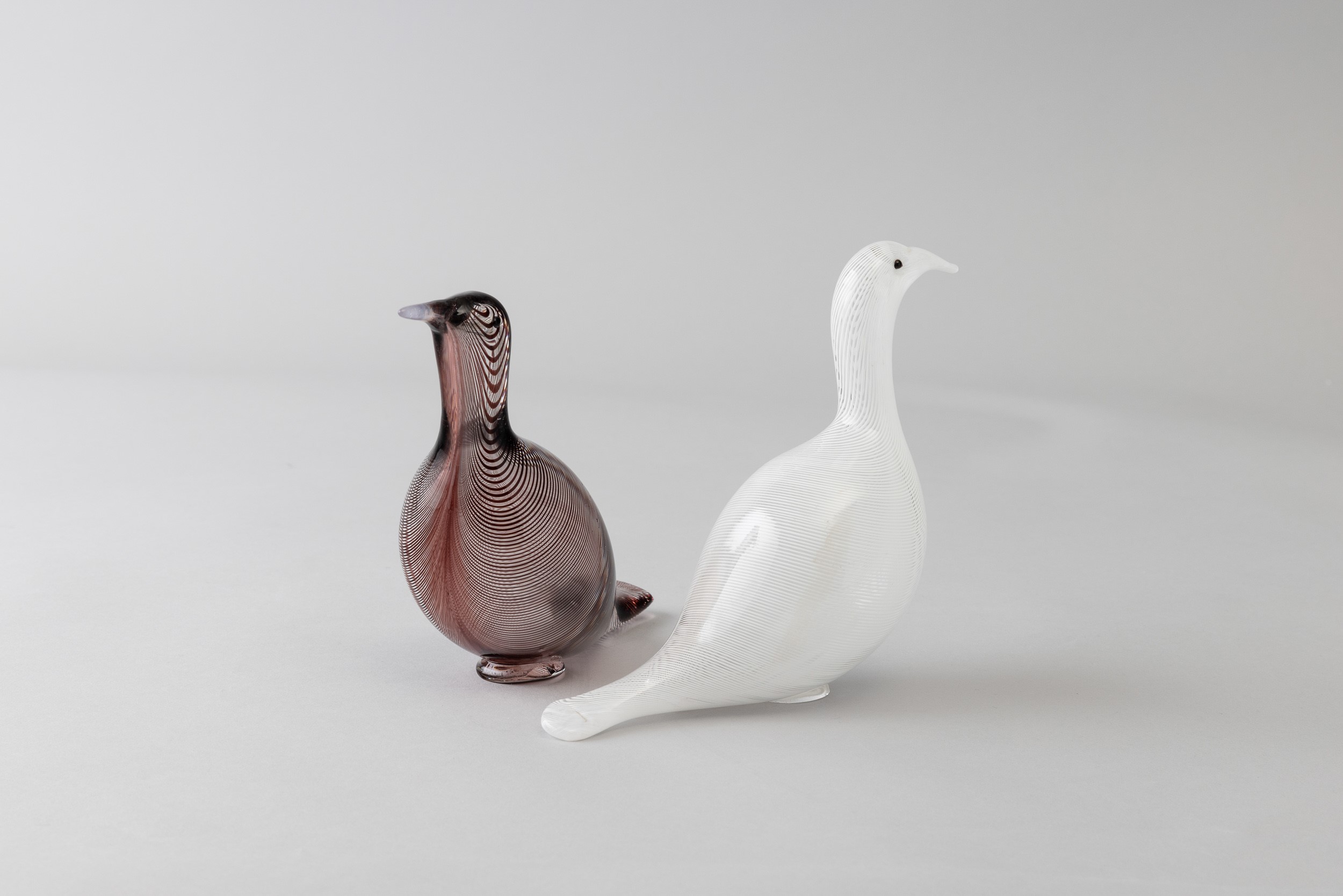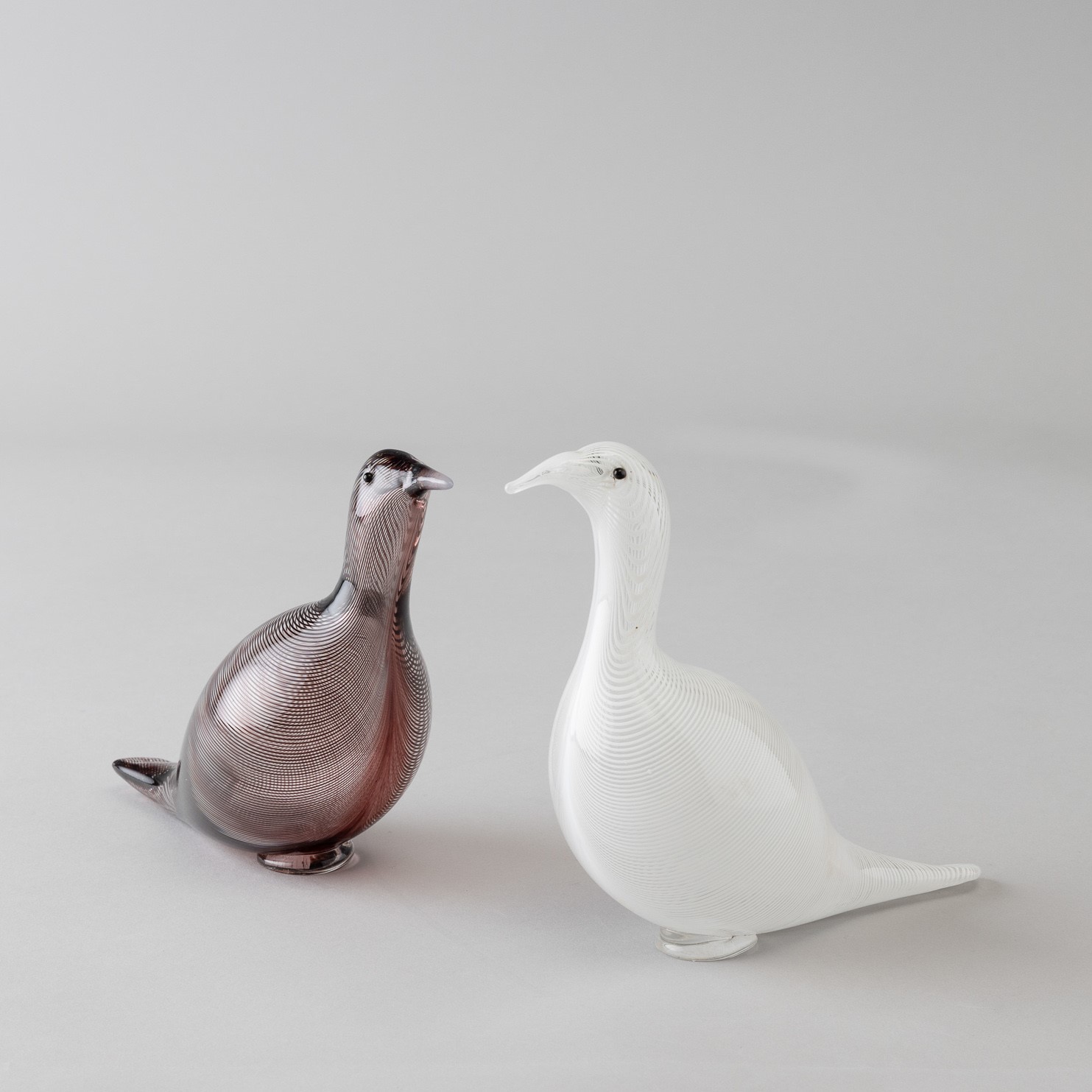 Two blown glass doves with a filigree decor. Both signed Venini Murano Italia