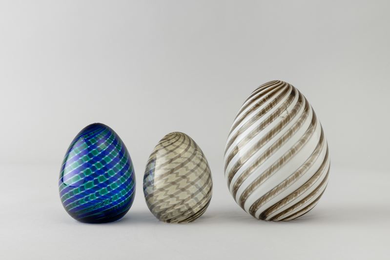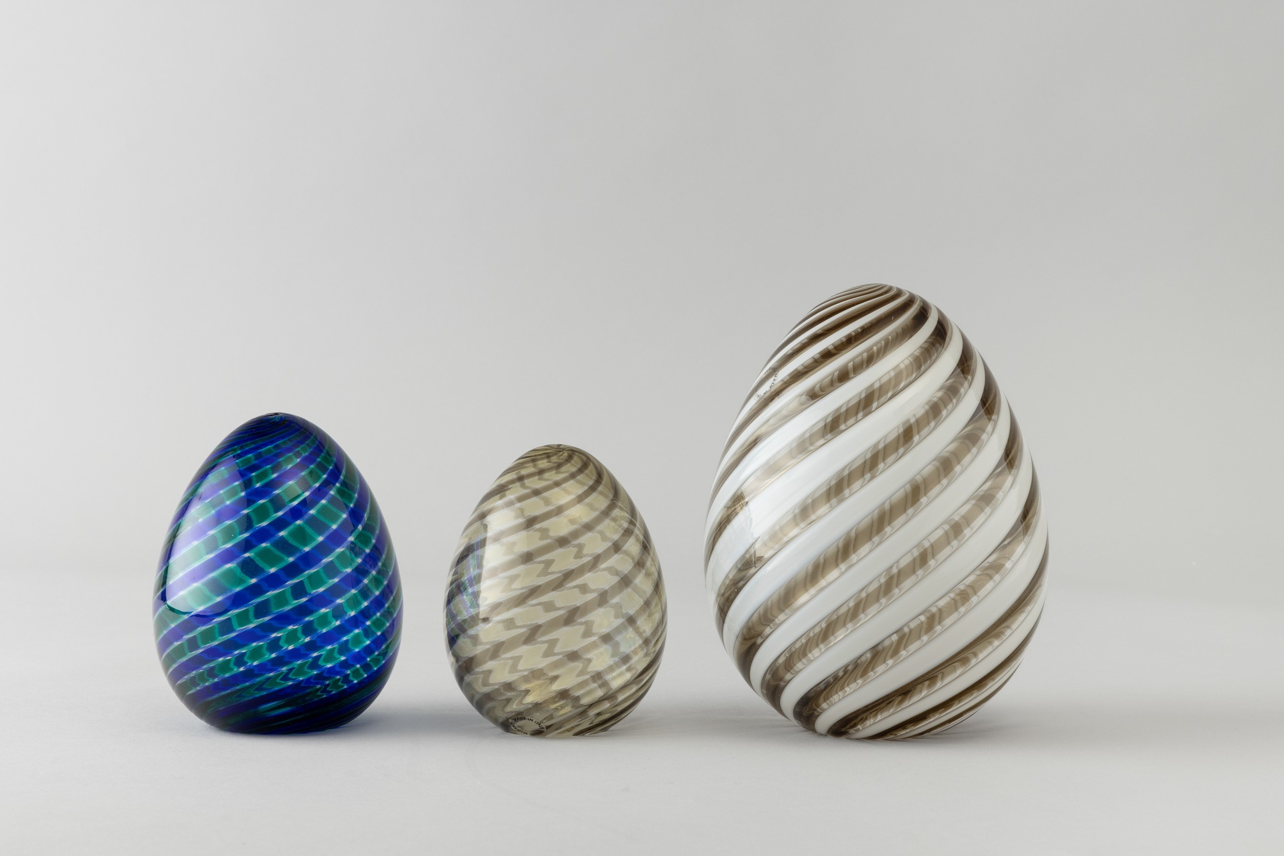 Three blown glass vases with a polychrome decor. Etched signature Venini Italia with dates