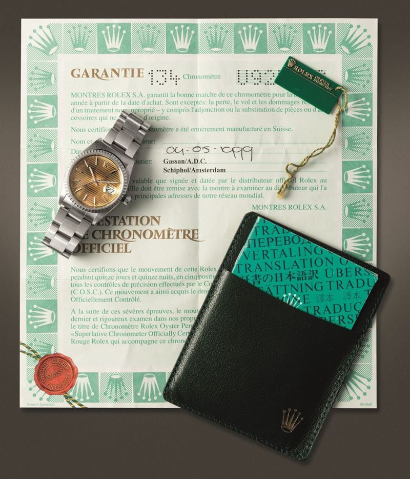 Orologio classico a carica automatica, con secondi al centro e datario al 3. Quadrante tapestry tropical con indici e lancette a barretta. Cassa impermeabile in acciaio con fondello e corona a vite personalizzata, vetro zaffiro con lente magnificatrice e lunetta godronata. Il bracciale oyster è in acciaio.