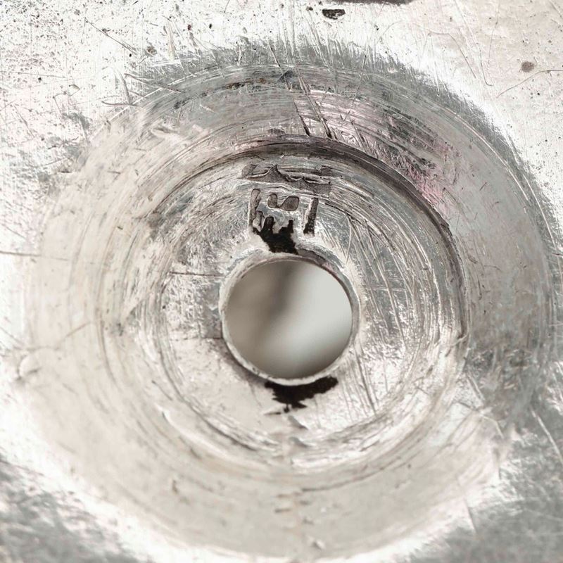 Acetoliera. Argento fuso, sbalzato, traforato e cesellato. Genova fine XVIII secolo. Marchio della Torretta con datario [..]