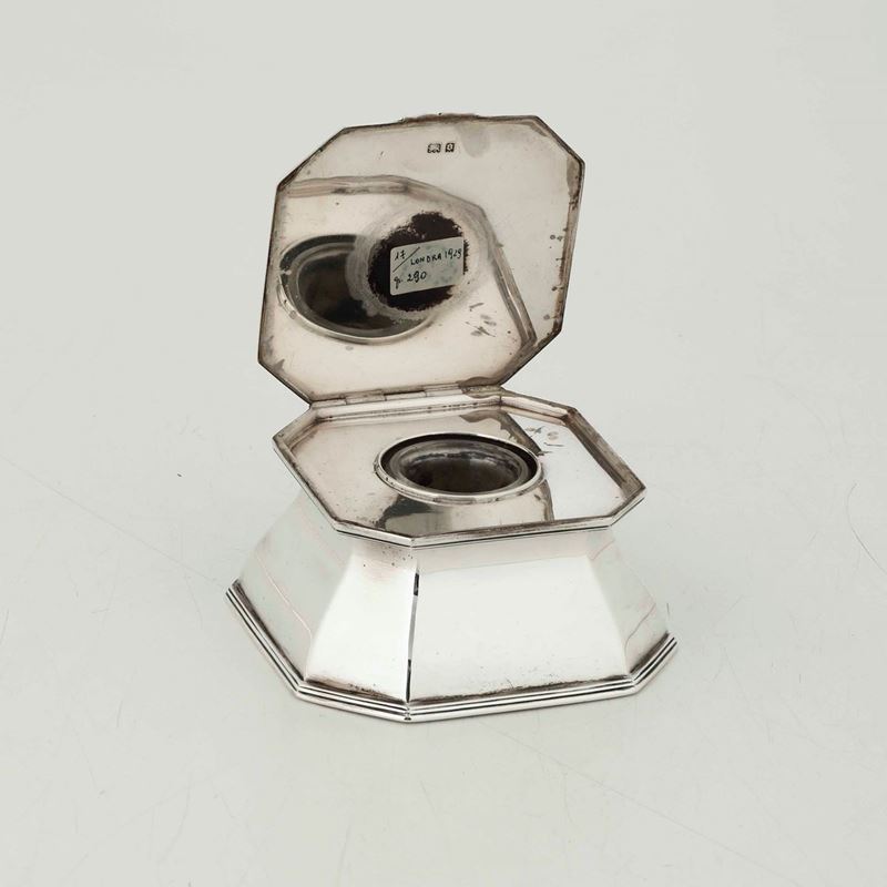 Calamaio. Argento fuso, sagomato e vetro. Londra 1929, argentiere Goldsmiths & silversmiths company