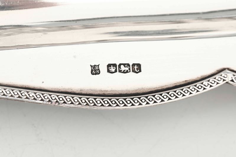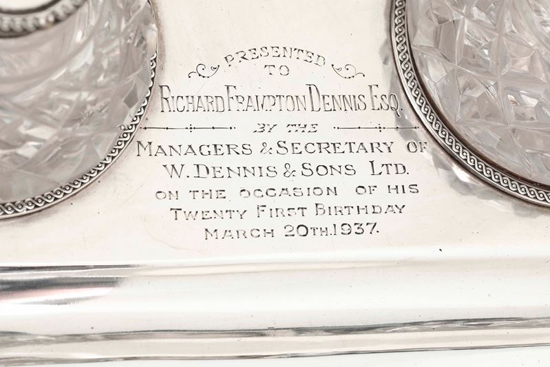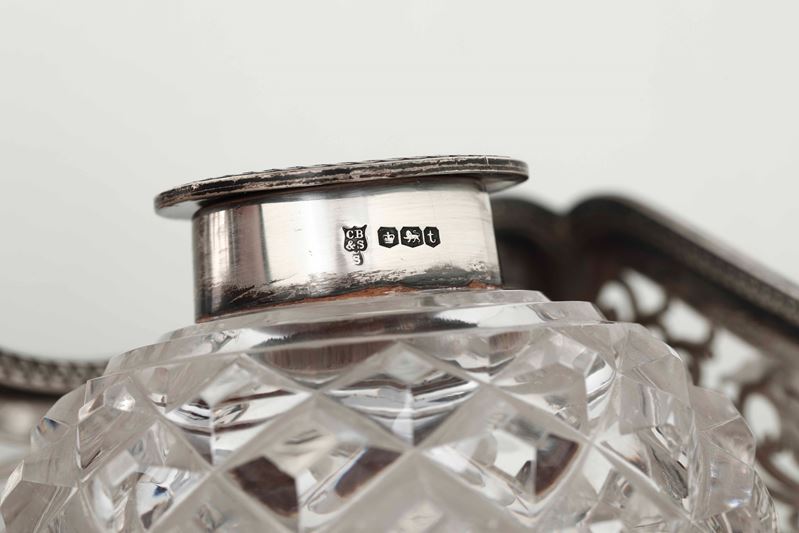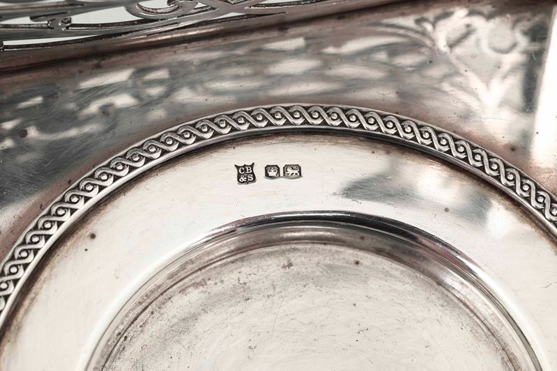 Calamaio. Argento fuso, sagomato, traforato e vetro molato. Marchi della città di Sheffield per l’anno 1936 e dell’argentiere Cooper brothers & sons