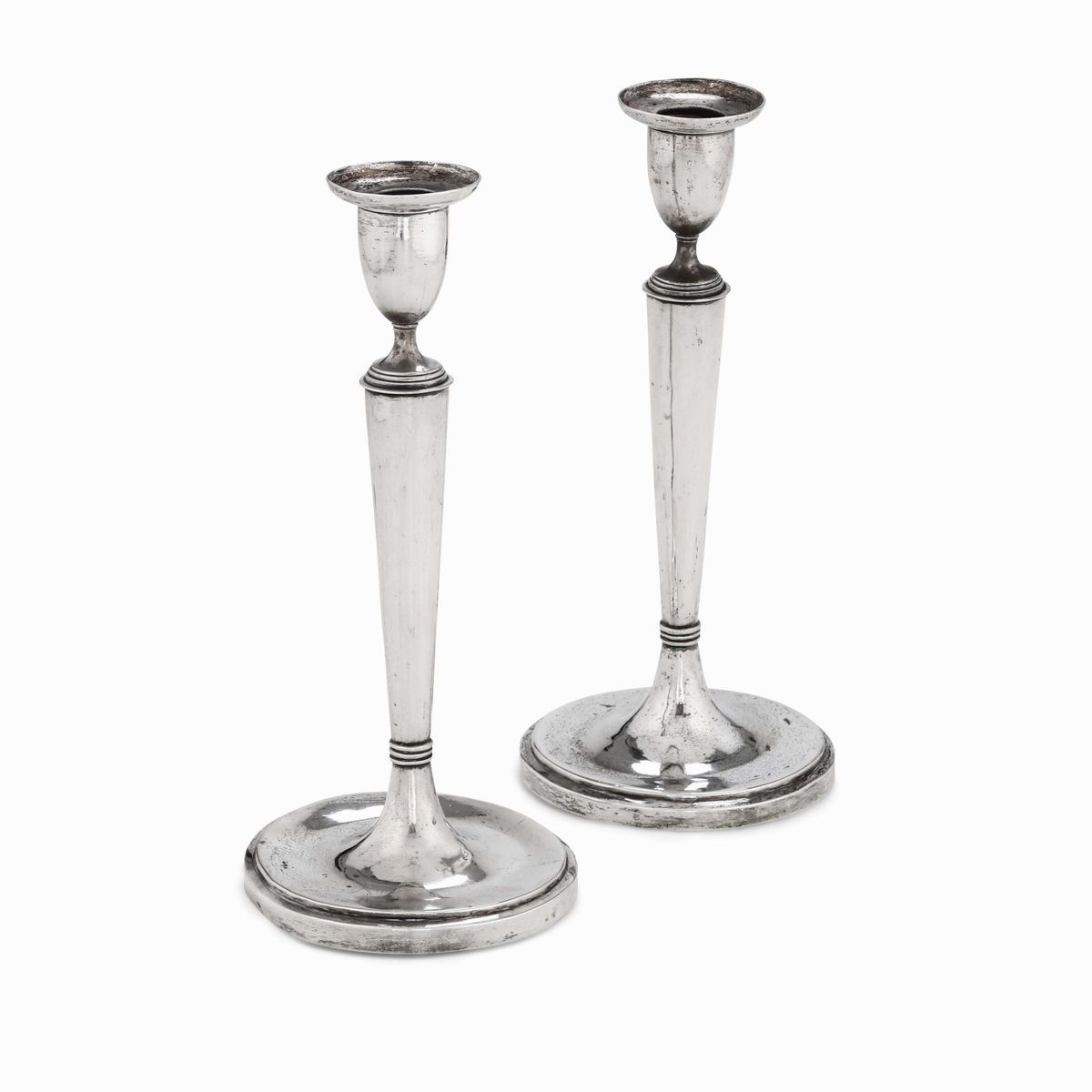 Coppia di candelieri Argento fuso e sbalzato. Roma, prima metà del XIX secolo, Maestro argentiere Francesco Colein (1795-1842)