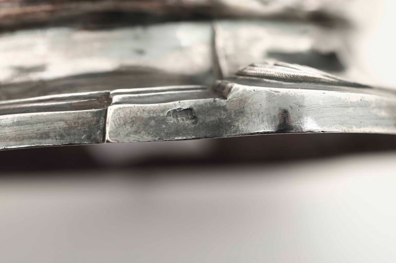 Coppia di doppieri. Argento fuso, sbalzato e cesellato. Genova terzo quarto del XVIII secolo. Bollo della “torretta” con datario .76 (1768?)