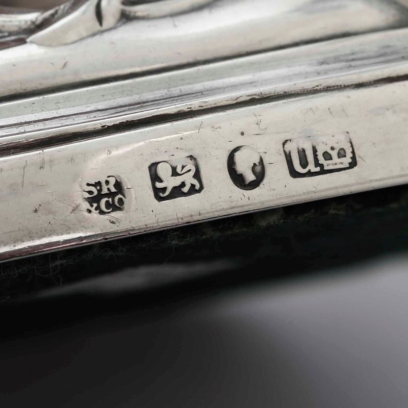 Coppia di piccoli candelieri. Argento fuso, sbalzato e cesellato. Marchi della città di Sheffield per l’anno 1840 e dell’argentiere SR&Co. (non identificato)