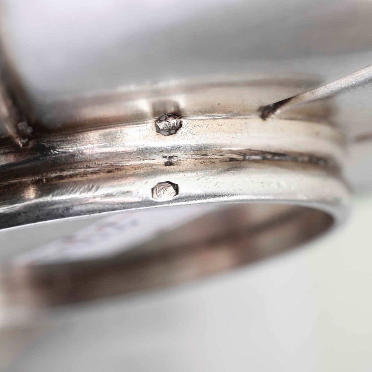 Coppia di tazze. Argento fuso, sbalzato e cesellato. Francia, marchio per l’esportazione in uso dal 1839 al 1879. Argentiere PQ entro losanga (Pierre Quellet ?)
