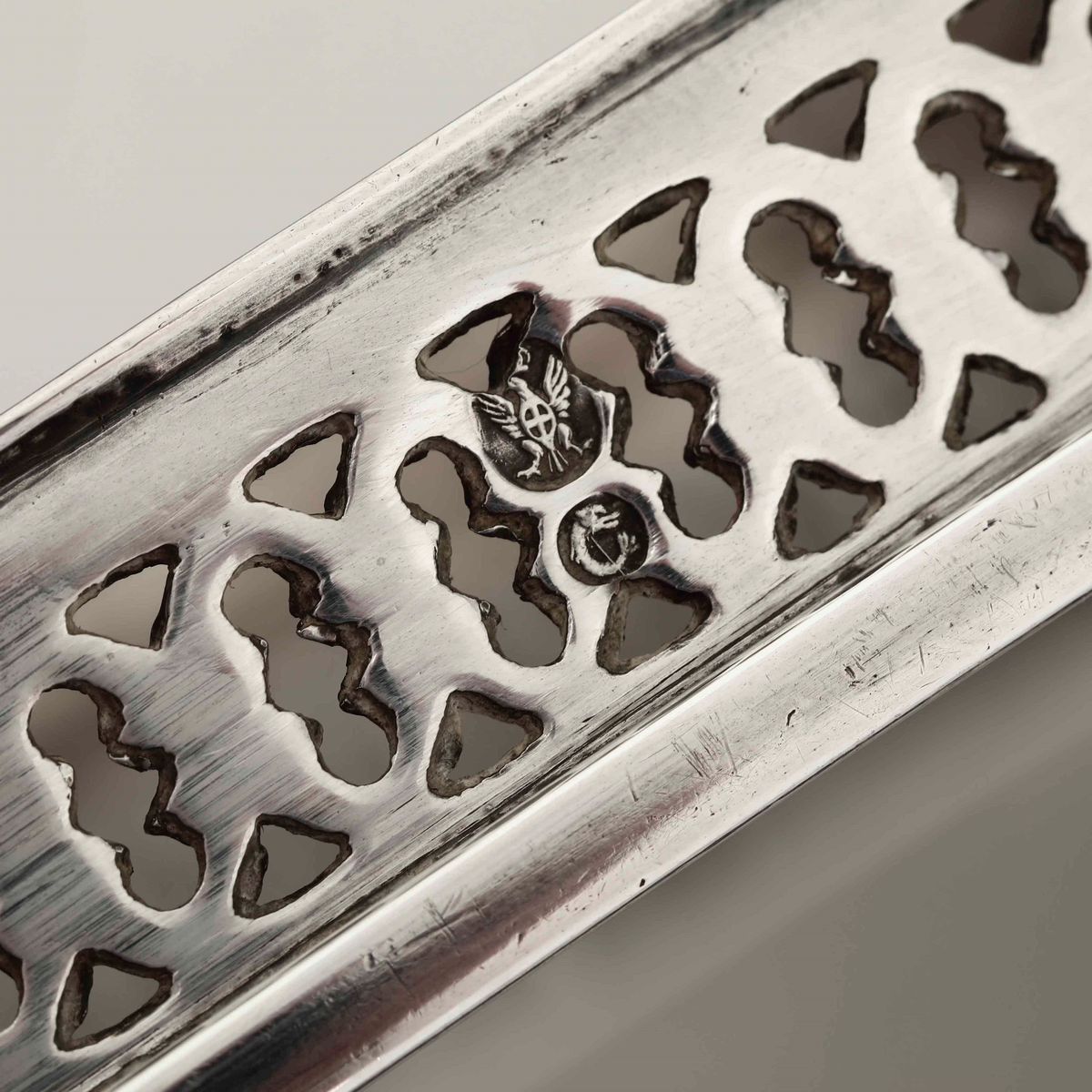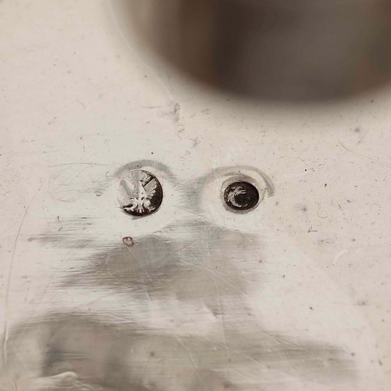 Due acetoliere. Argento primo titolo fuso, sbalzato e traforato. Genova XIX secolo, marchi con aquila e delfino in uso dal [..]