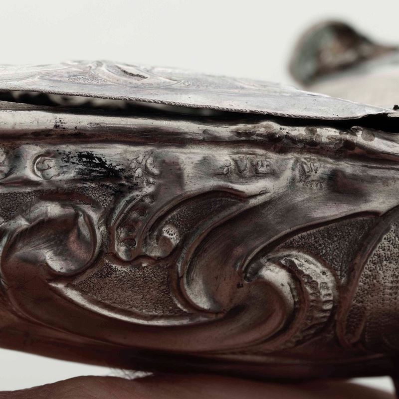 Navicella. Argento fuso, sbalzato e cesellato. Argenteria italiana del XVIII secolo (Napoli?) marchi consunti di difficile lettura