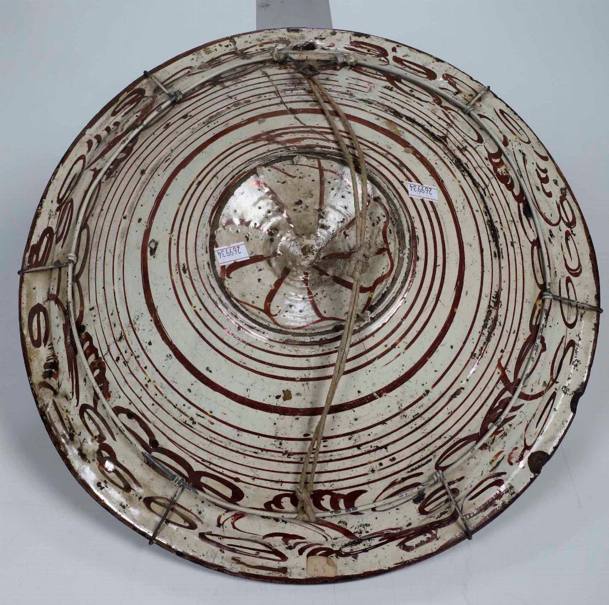 Maiolica a lustro in rosso. Diametro cm 39. Conservazione: felatura