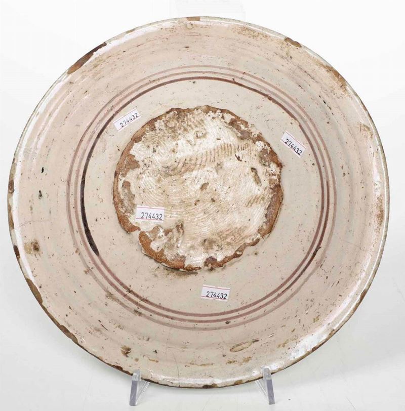 Maiolica. Diametro cm 30,5. Conservazione: ottima; insignificanti salti di smalto al bordo