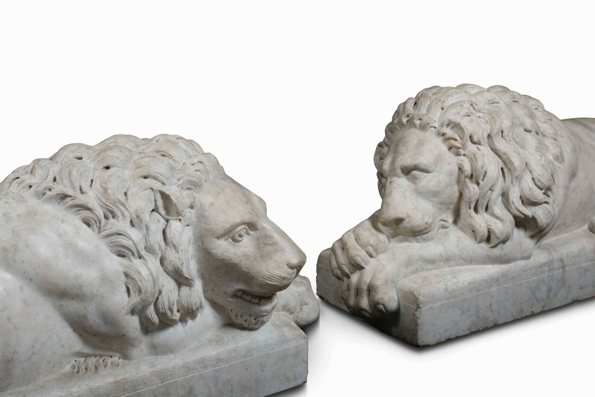 Leoni accovacciati. Marmo. Scultore del XIX secolo