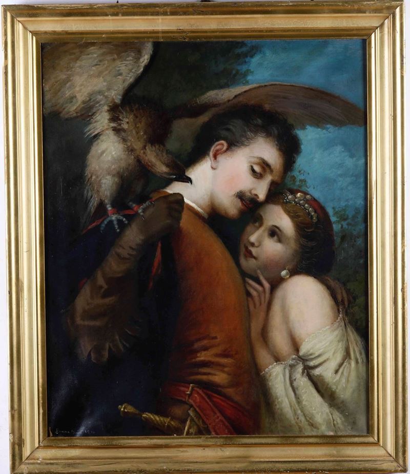 Anonimo del XIX secolo Scena galante con falco