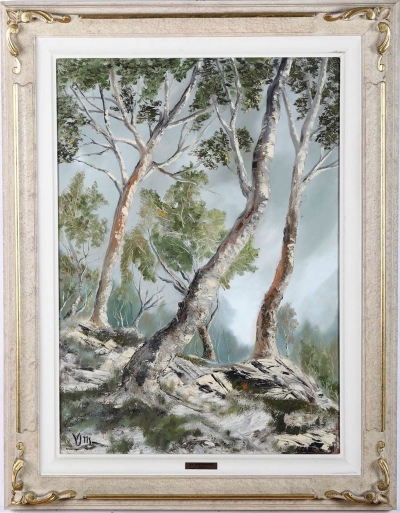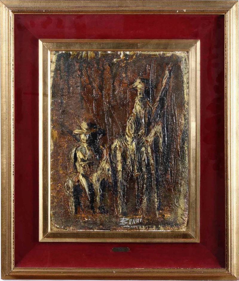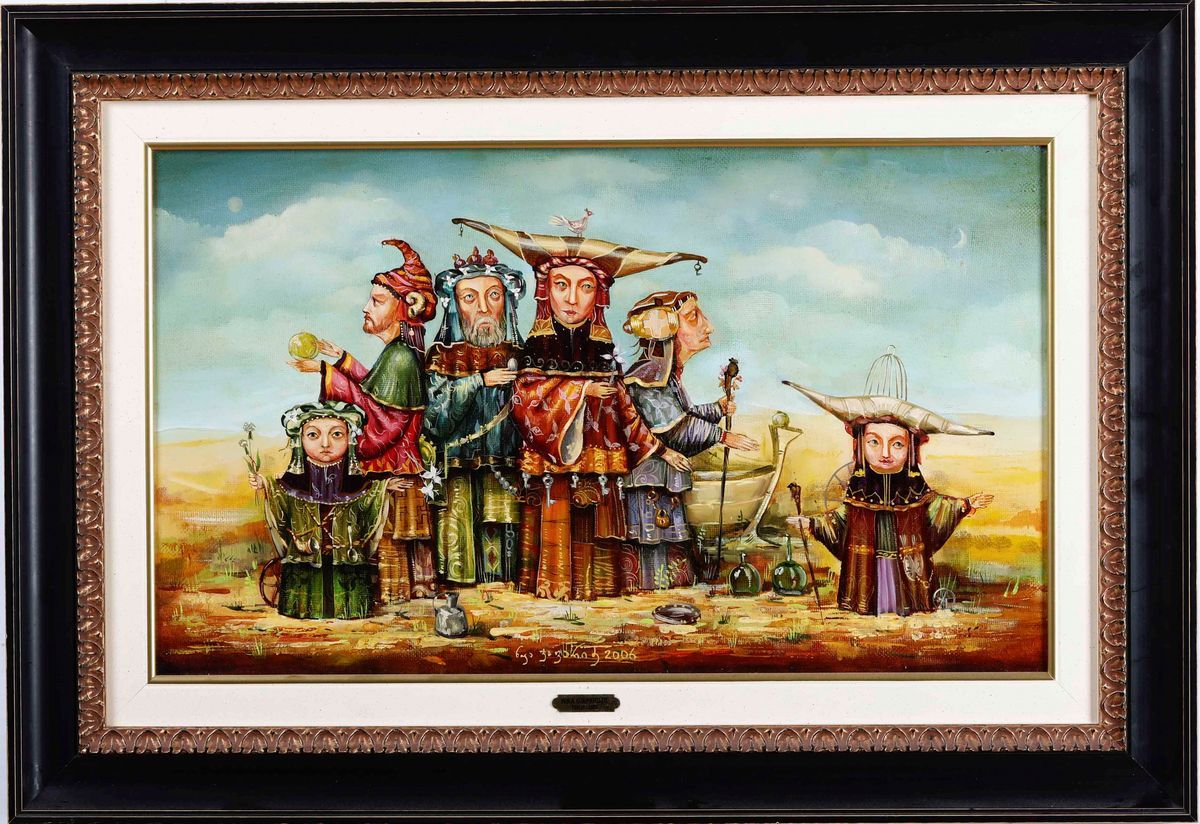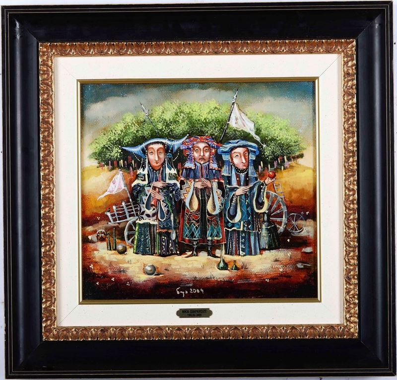Lotto composto da tre dipinti di Benito Merlì, tre dipinti di Nika Giapardze e uno di Vito Mastronardi