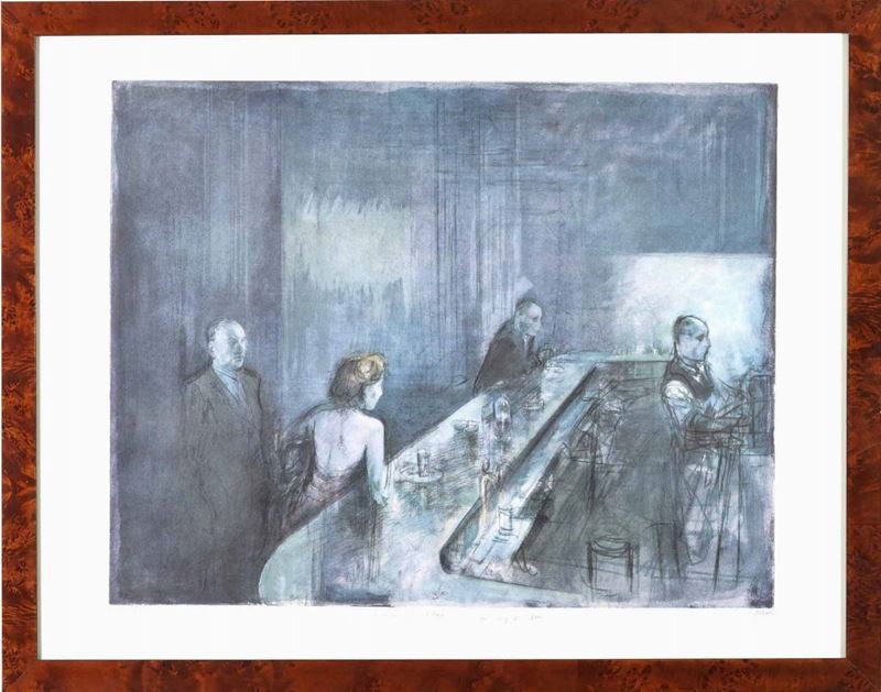 - Alberto Sughi (1928-2012) Al caffè. Litografia su carta. Prova d’artista