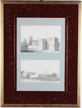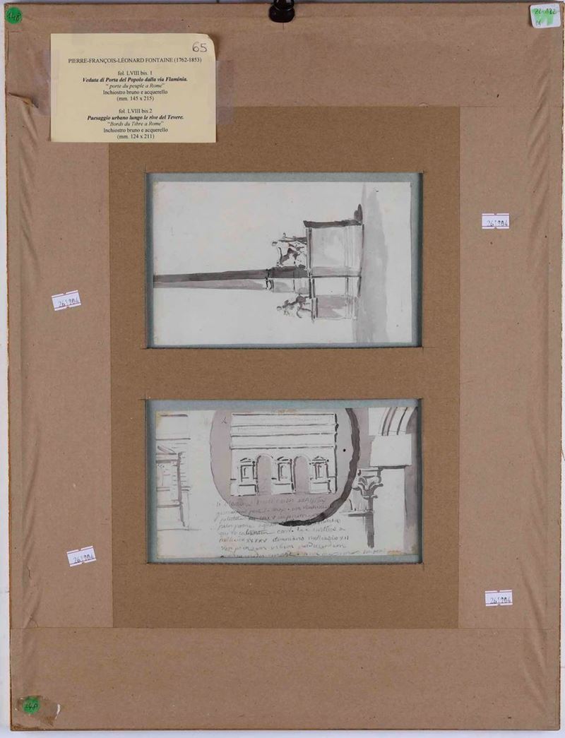 A) Porta del Popolo (recto) Verso: I Dioscuri di piazza del Quirinale. B) Lungo il Tevere (recto). Verso: L’Arco di Germanico a Saintes (Francia)