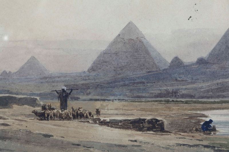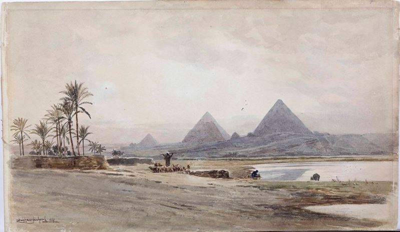 Pittore del XIX secolo Paesaggio con piramidi, 1891