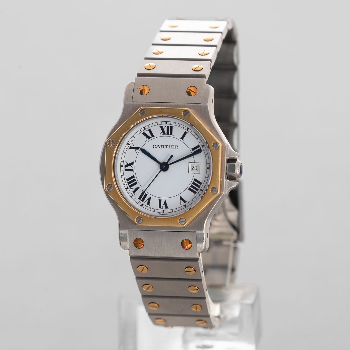 CARTIER - Santos Octagon acciaio e oro automatico, quadrante bianco con numeri Romani con datario accompagnato da scatola e garanzia in ottime condizioni
