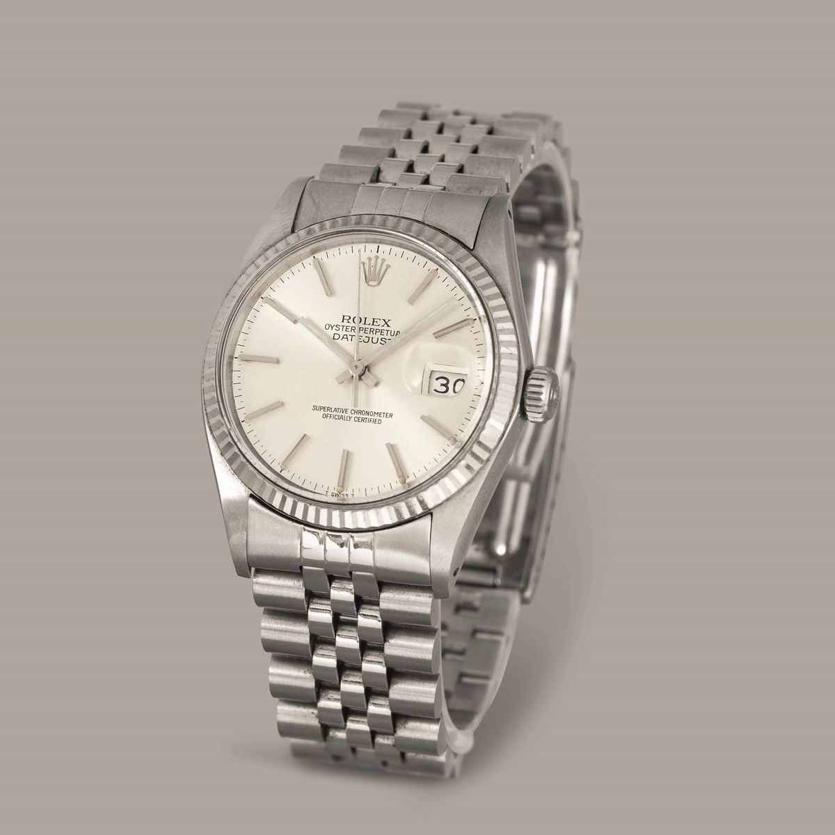ROLEX - Datejust 16014 cassa in acciaio con lunetta zigrinata in oro bianco, quadrante Argentè con indici a bastone, bracciale Jubilèe, movimento automatico con datario