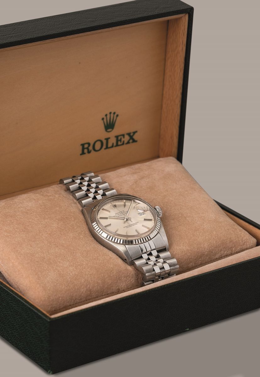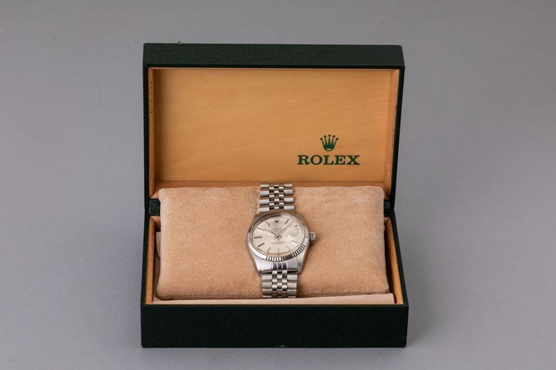 ROLEX - Datejust 16014 cassa in acciaio con lunetta zigrinata in oro bianco, quadrante Argentè con indici a bastone, bracciale [..]