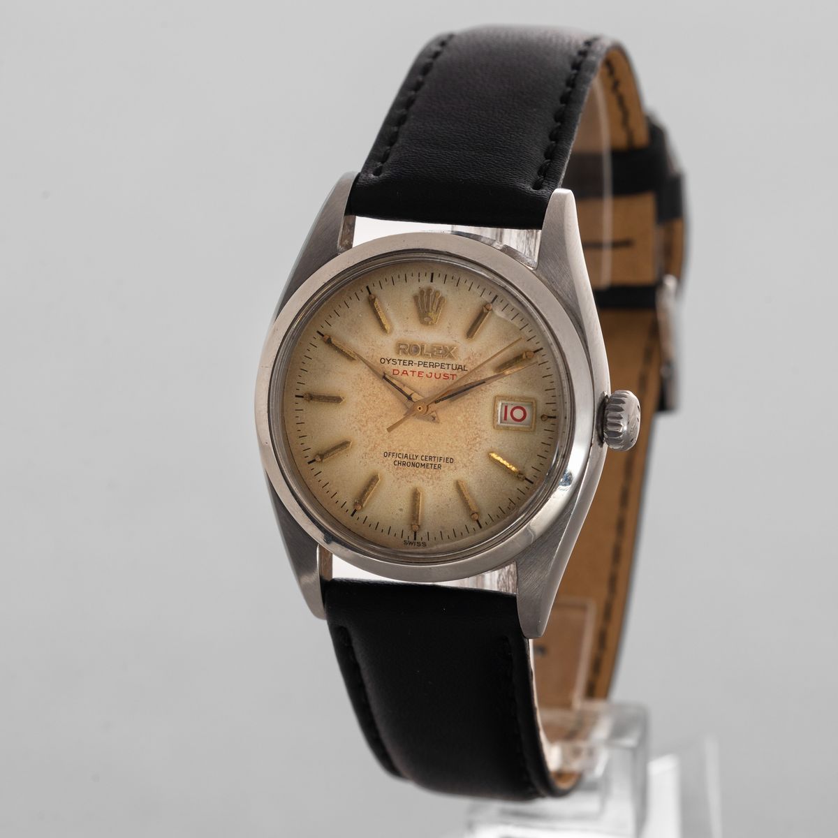 ROLEX - Datejust "Scritta Rossa" ref 6304 in acciaio, quadrante Argentè fanè con indici a daga, fondello a vite