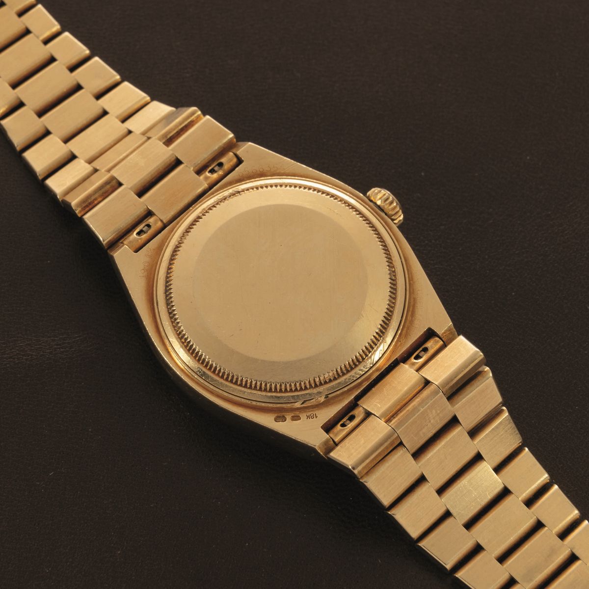 ROLEX - Daydate Oysterquartz ref 19018 in oro giallo 18k con quadrante in Radica con doppia finestrella per giorno e data, [..]