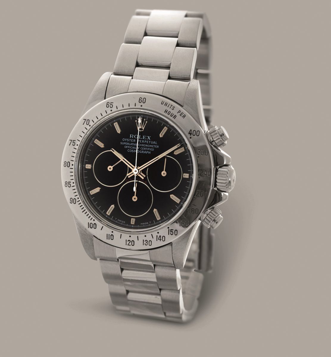 ROLEX - Daytona Primero ref 16520 "Patrizzi", cronografo automatico tre contatori virati al nero, cassa impermeabile in acciaio con fondello e tasti a vite