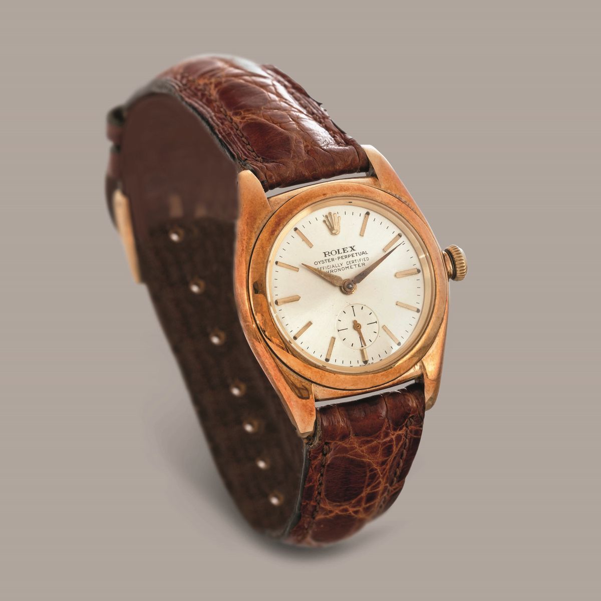 ROLEX - Ovetto ref 3131 in oro giallo 14k quadrante Argentè Soleil, secondi in basso e carica automatica