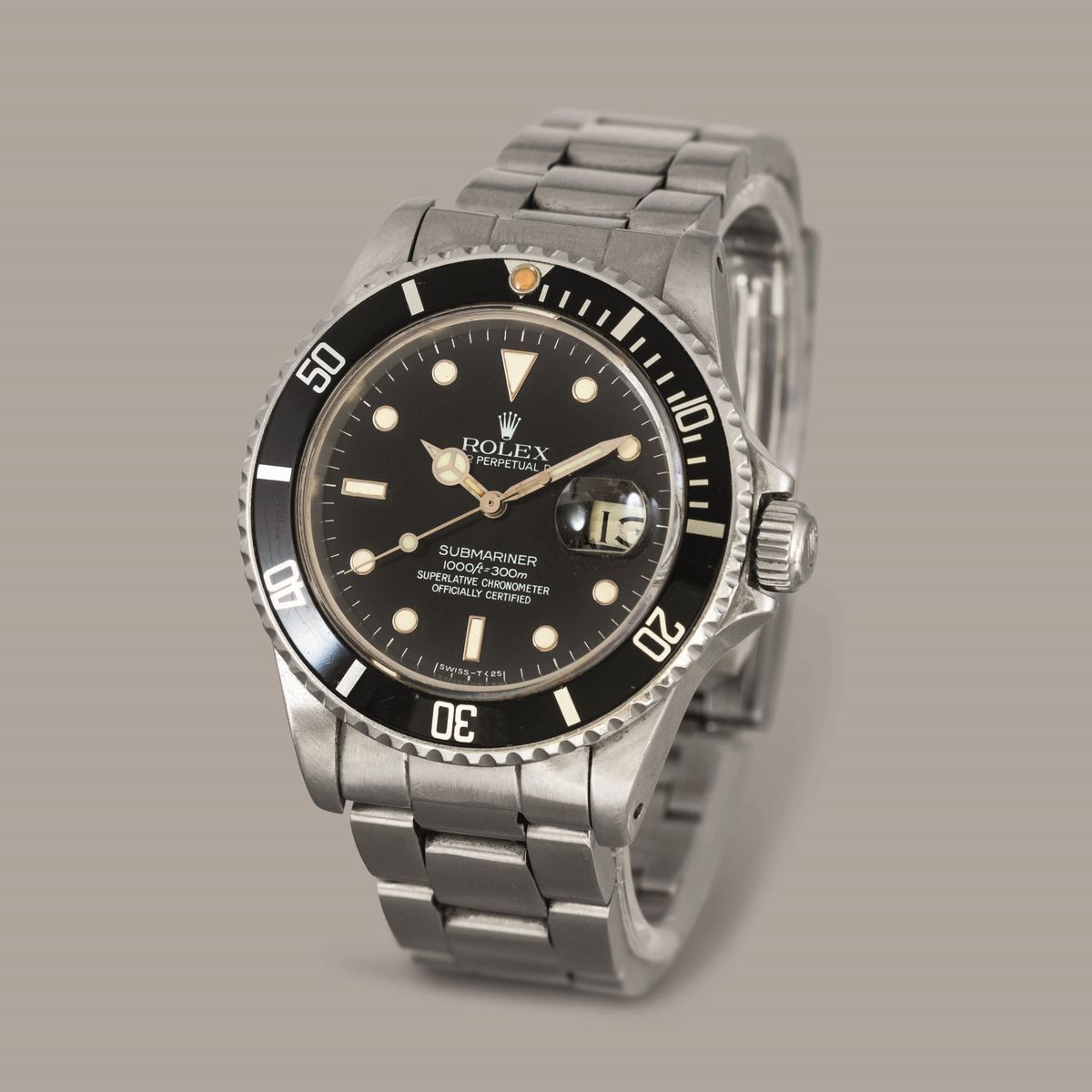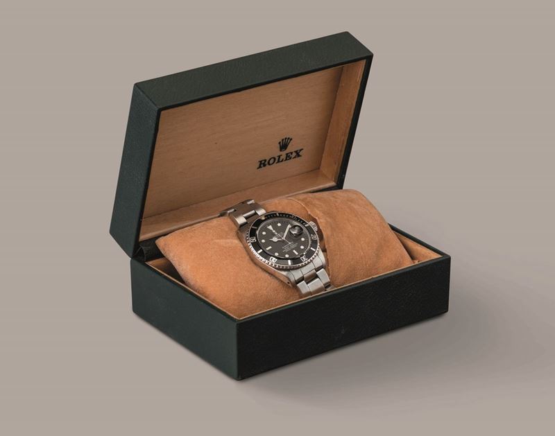 ROLEX - Submariner 16800 con cassa in acciaio con ghiera girevole, quadrante nero al trizio con bicchierini, bracciale Oyster [..]