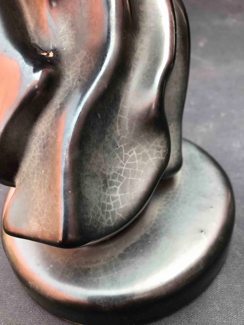 Figura in terraglia a colaggio con decoro in smalto nero antracite