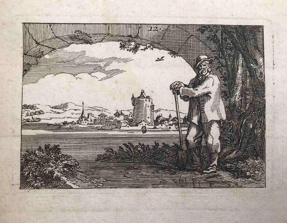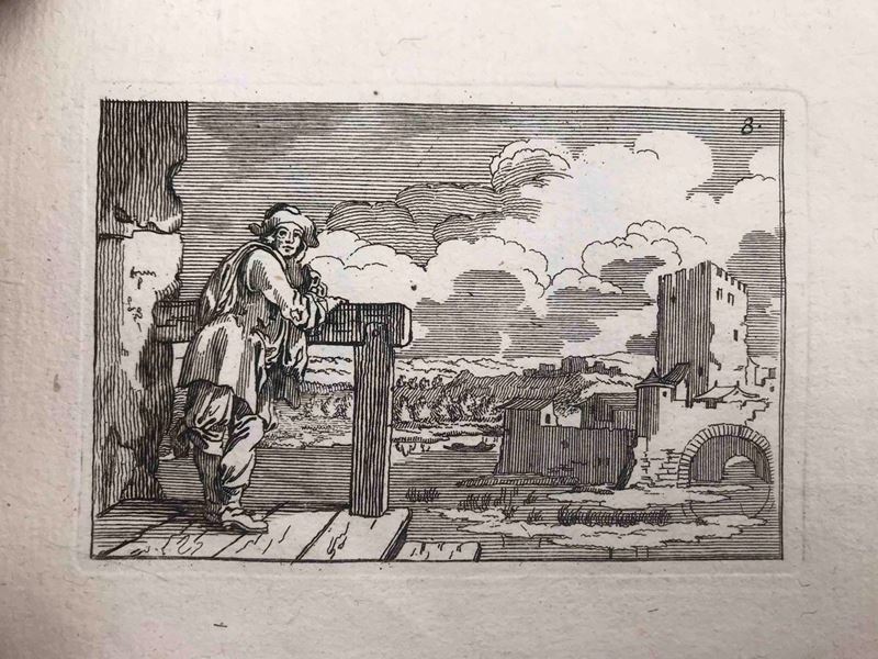 Raro libretto con 10 incisioni + frontespizio. Misure della parte incisa cm 9,5 x 6,6