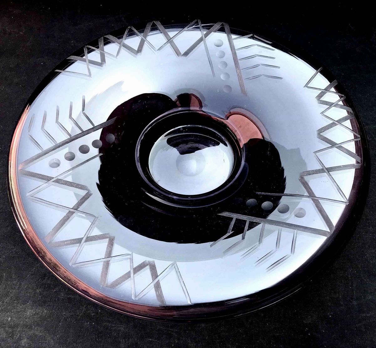 Piatto decò inciso alla mola in vetro violetto anni'30