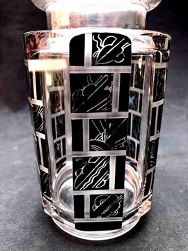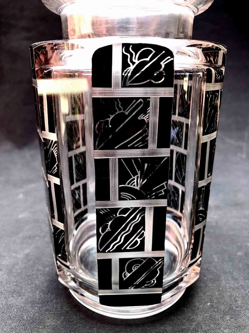 Vaso ottagonale in cristallo molato con motivi graffiti decò. XX secolo