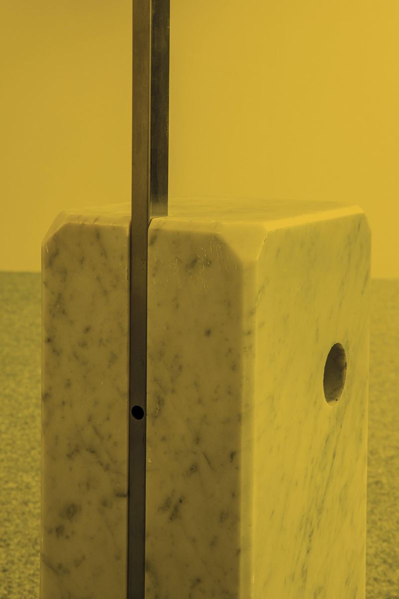 Struttura con base in marmo bianco di Carrara e stelo telescopico. Diffusore in alluminio.