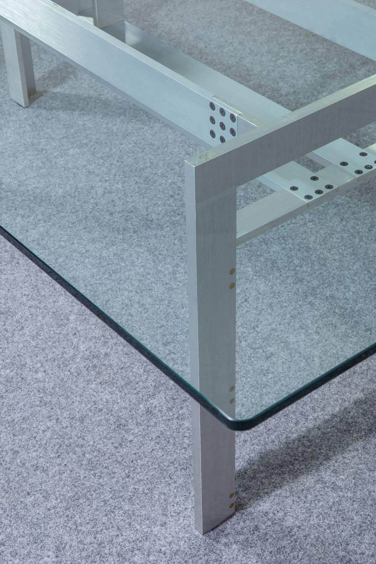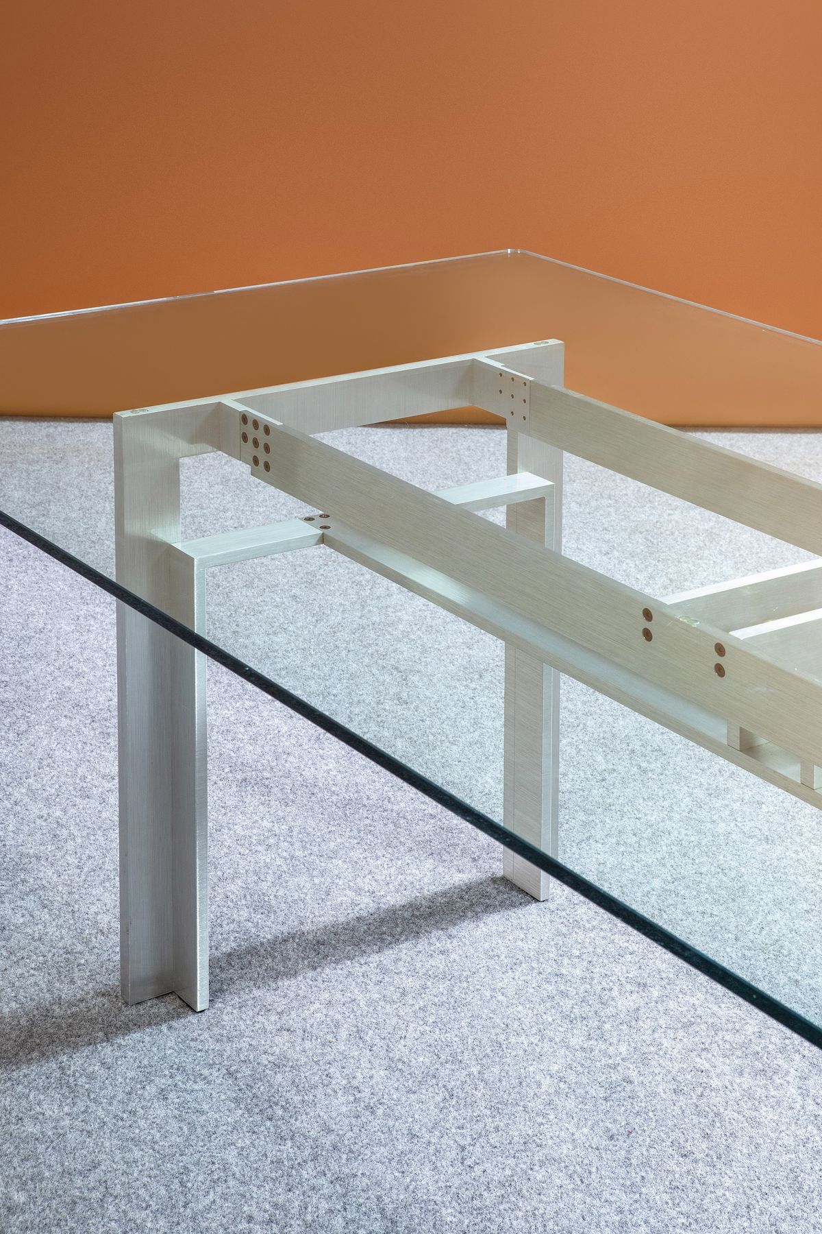 Struttura in acciaio trafilato e piano in cristallo.