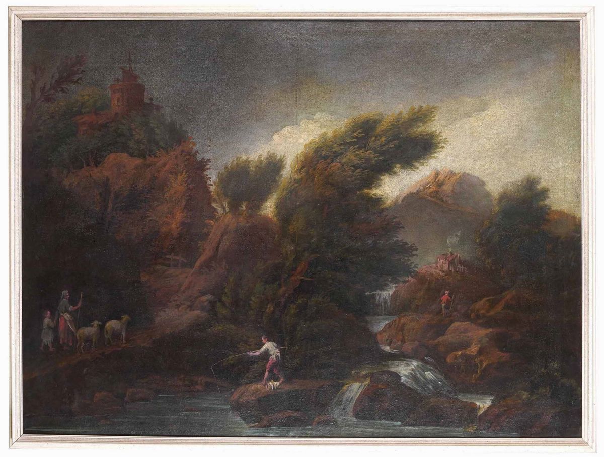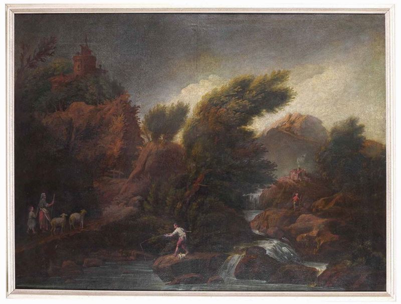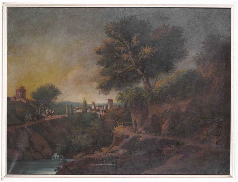 Scuola del XVIII-XIX secolo Paesaggi con figure in riva al fiume