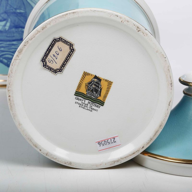Coppia di vasi con coperchio Inghilterra, Stoke-on-Trent, Manifattura Gray's Pottery, XX secolo
