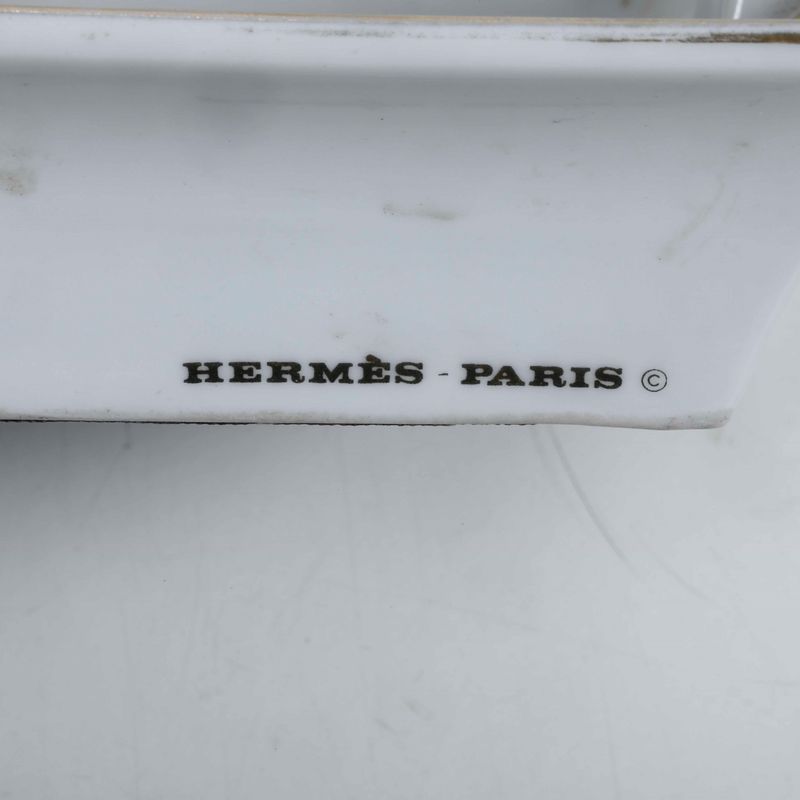 Porcellana policroma e dorata. Marca: “Hermès Paris” e “Made in France” in oro. Dimensioni: cm 19,4x15,7. Conservazione: ottima; usure all'oro