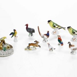 Sette figurine in miniatura di animali Meissen, XX secolo