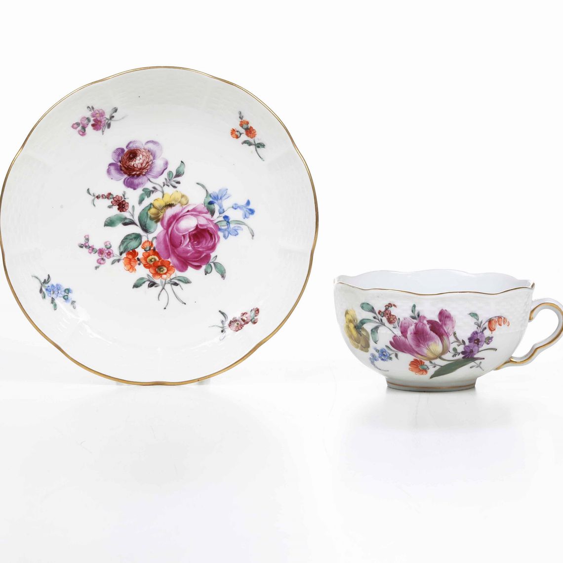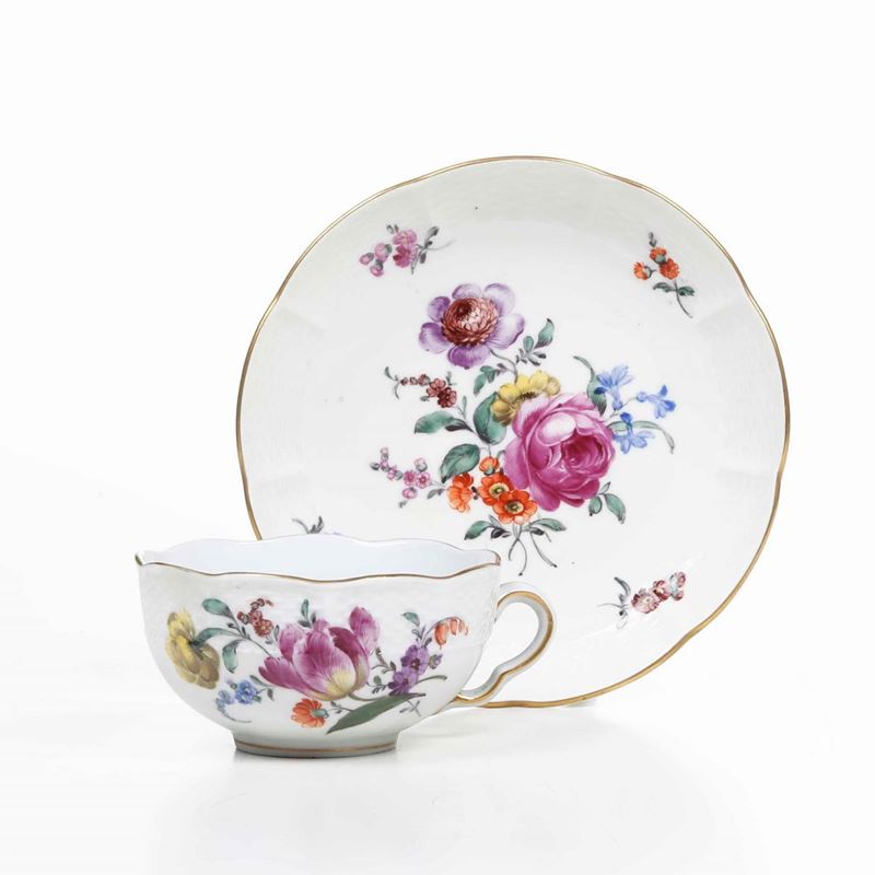 Una tazza e un piattino Germania, Manifattura di Ludwigsburg XVIII secolo (piattino) Tazza imitazione del XX secolo