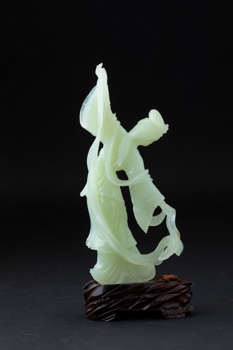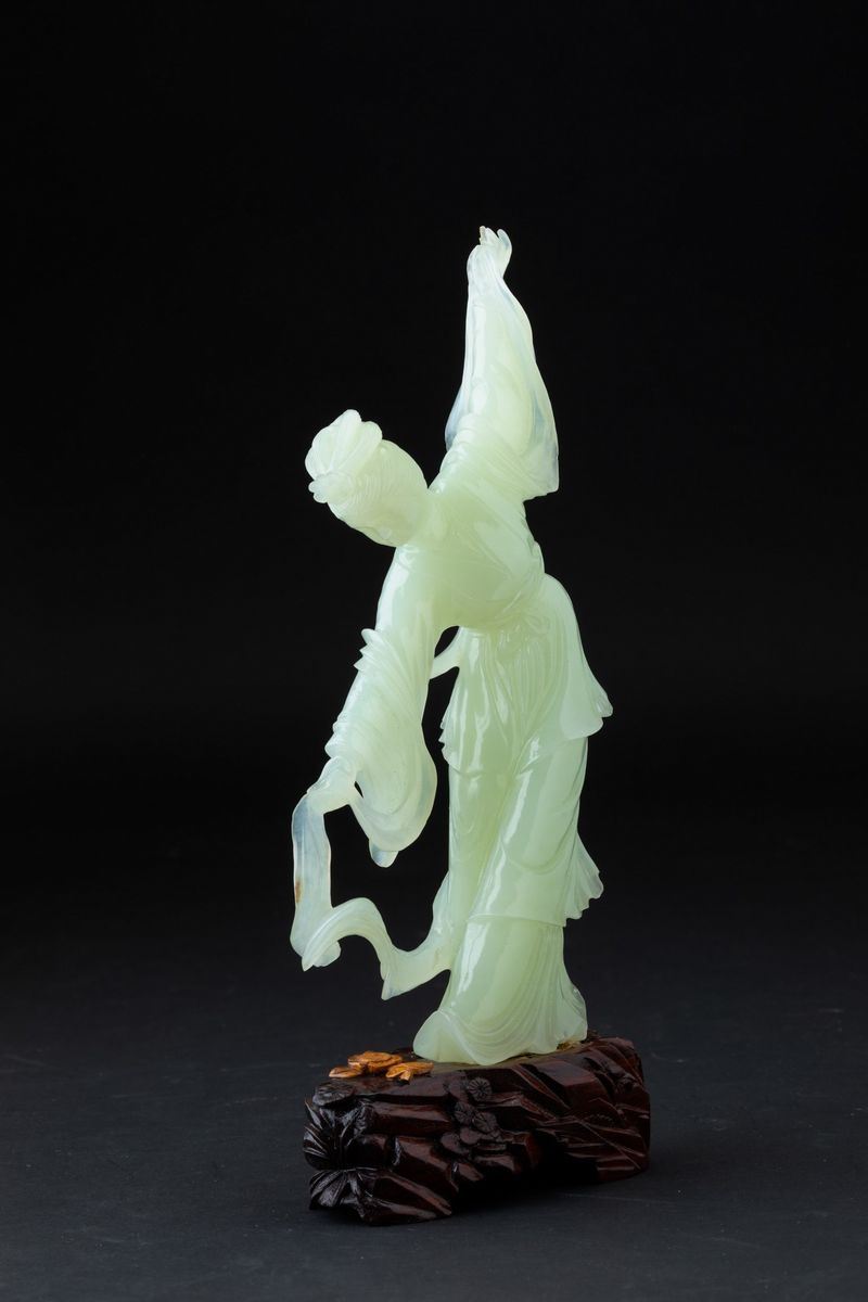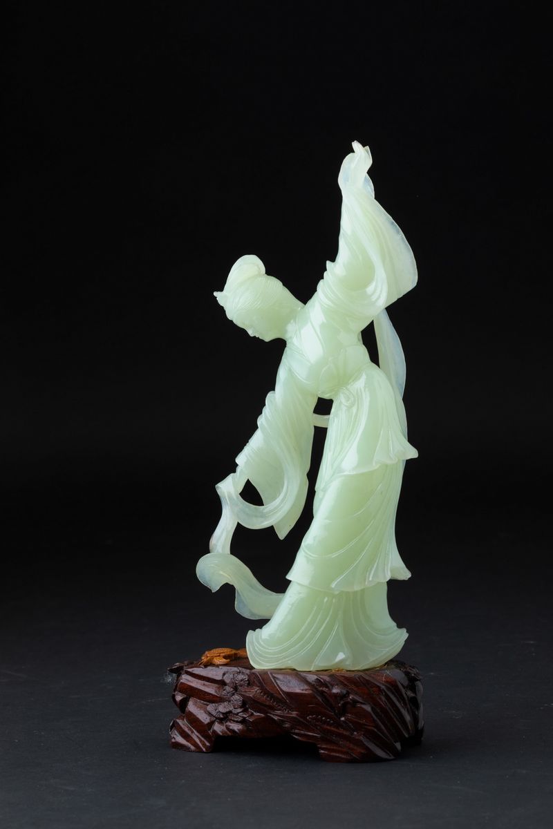 Figura di fanciulla danzante scolpita in giada verde, Cina, XX secolo