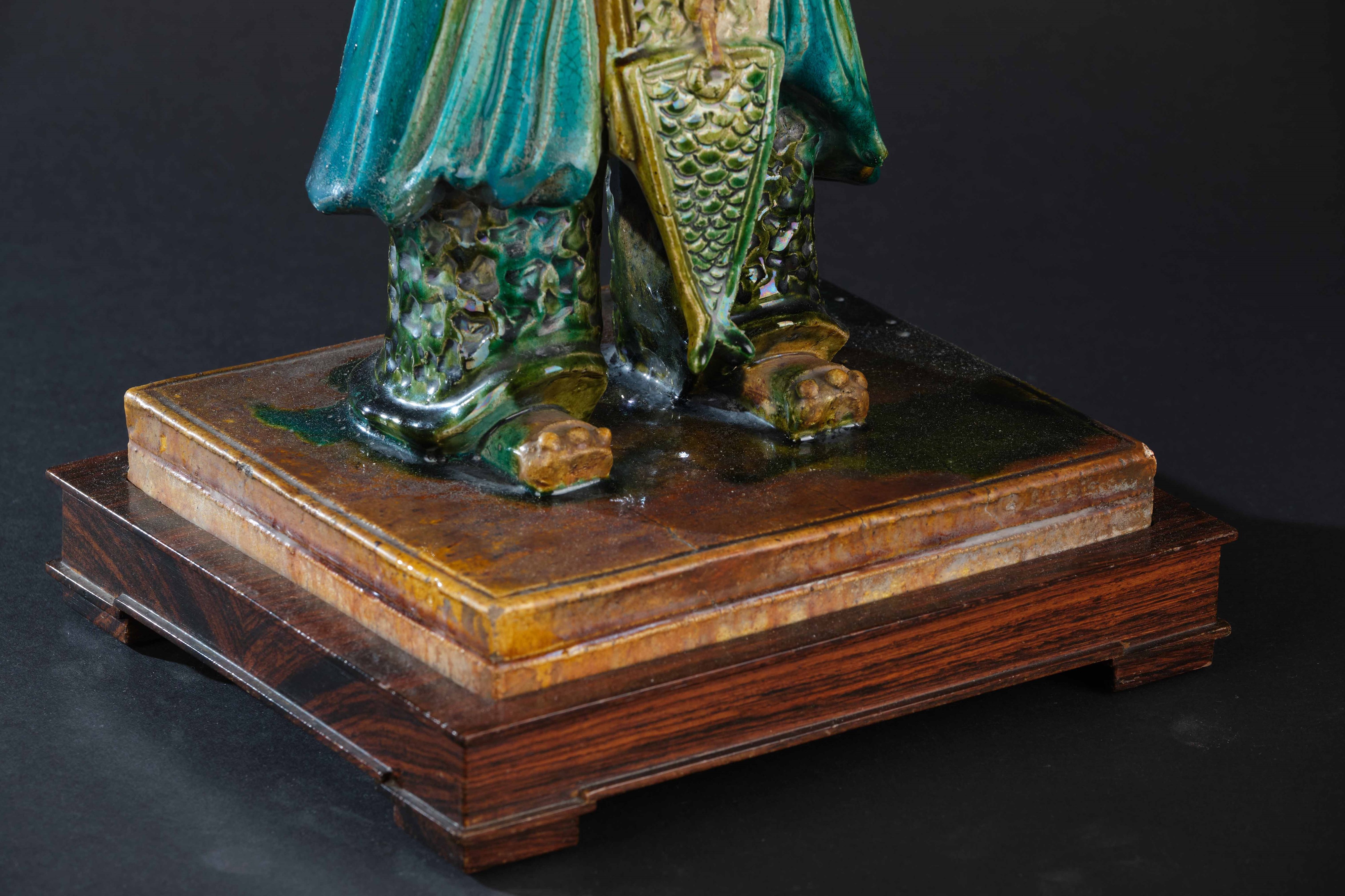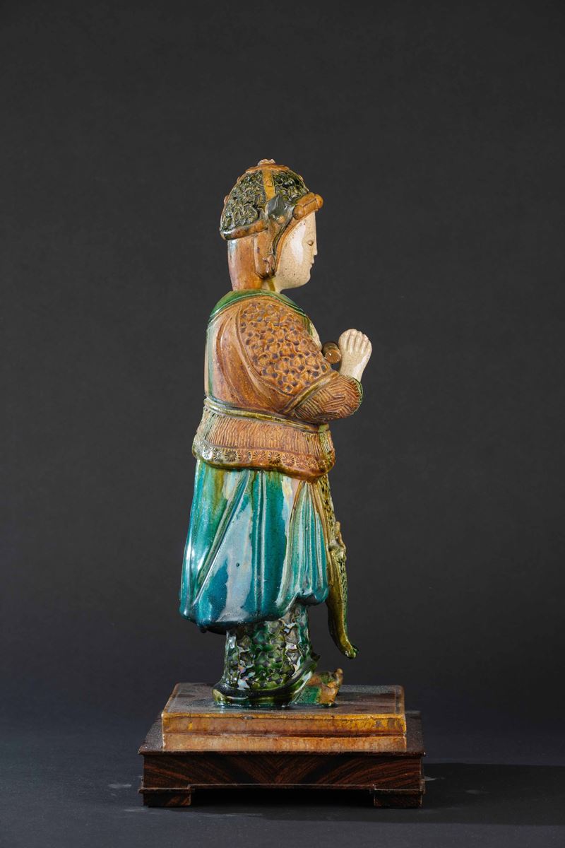 Figura di guerriero in ceramica invetriata, Cina