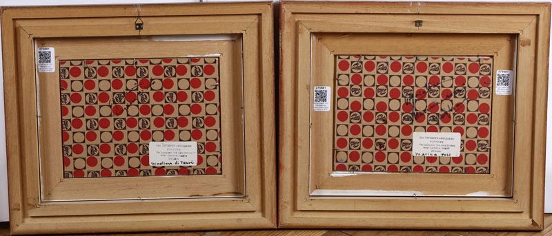 firmati in basso a sinistra, etichetta del pittore, titolati e firmati al retro