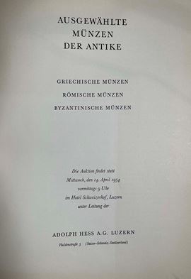 ADOLPH HESS AG . Ausgewählte Münzen der Antike. Lucerna, 14 Aprile 1954.