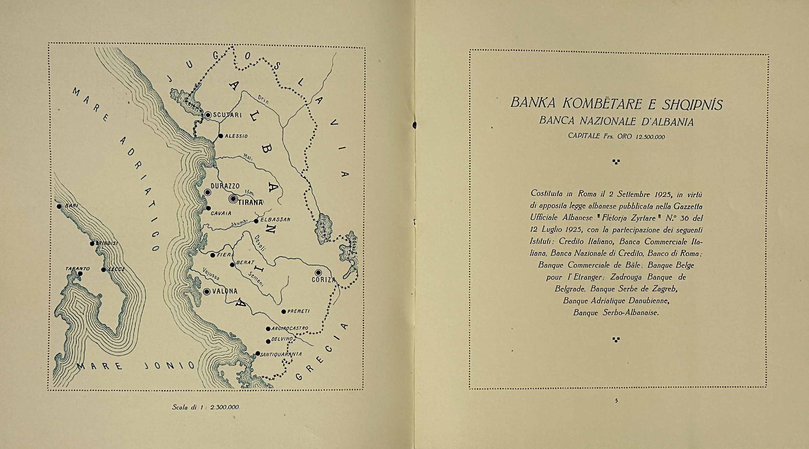 BANCA NAZIONALE D'ALBANIA. BANKA KOMBETARE E SHQIPNIS.