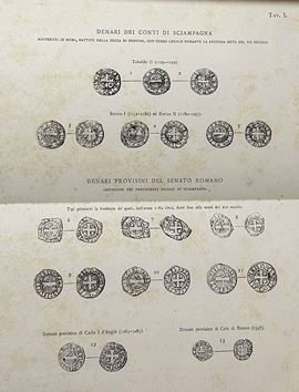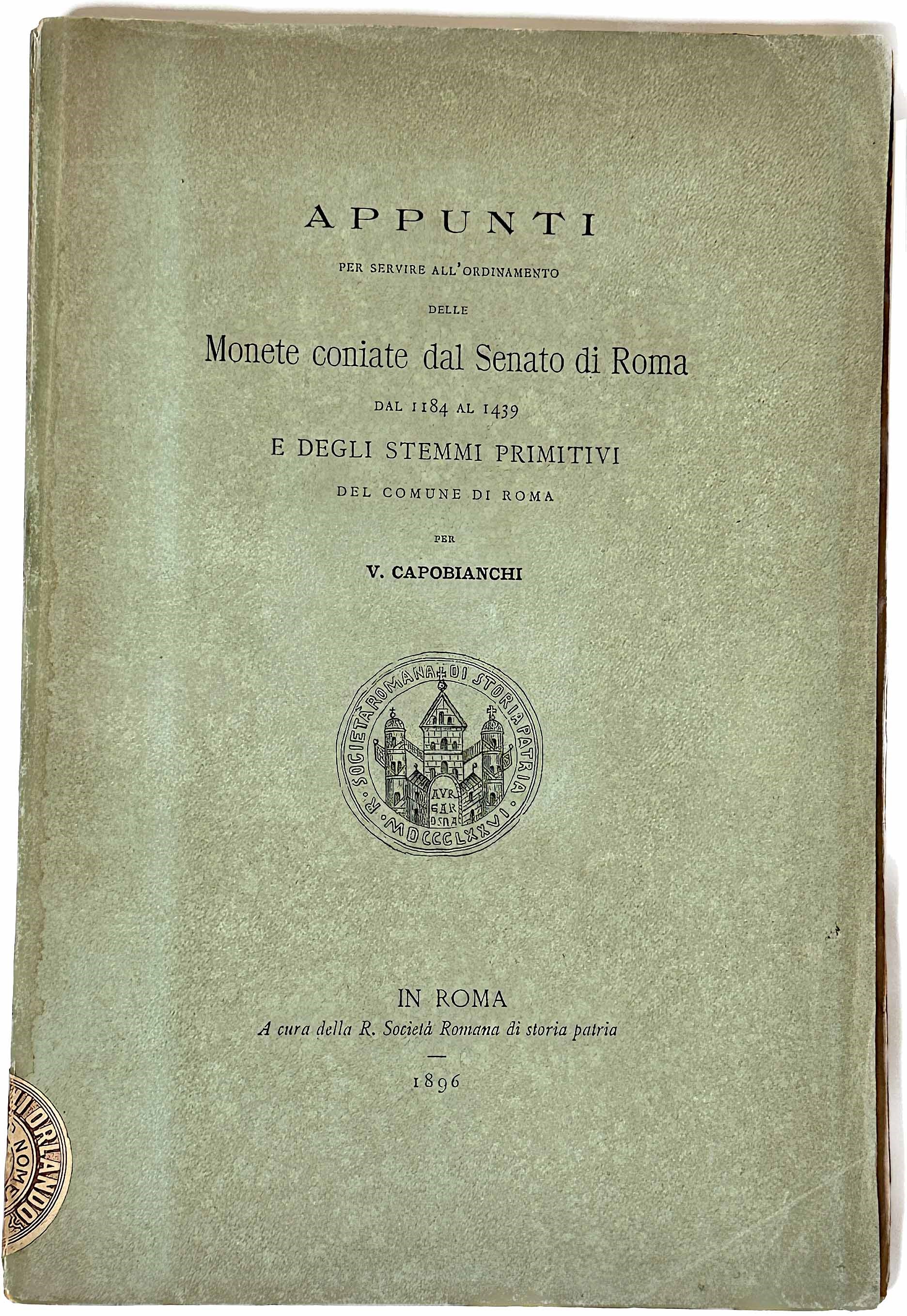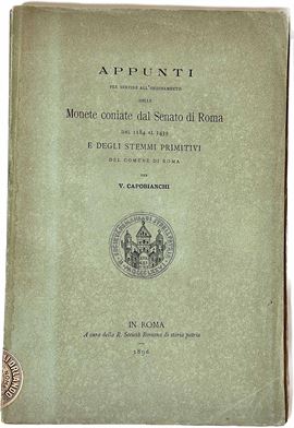 CAPOBIANCHI V. Appunti per servire all'ordinamento delle Monete coniate dal Senato di Roma dal 1184 al 1439 e degli stemmi primitivi del Comune di Roma.