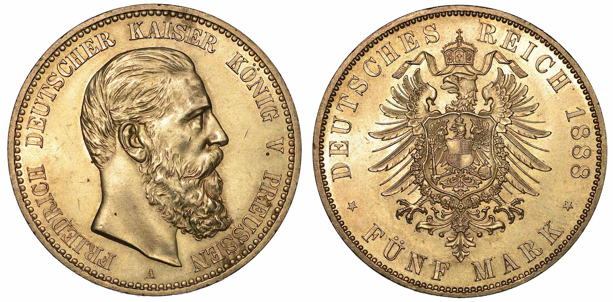 GERMANIA - PRUSSIA. FRIEDRICH III, 1852-1907. 5 Mark 1888. Berlino.
