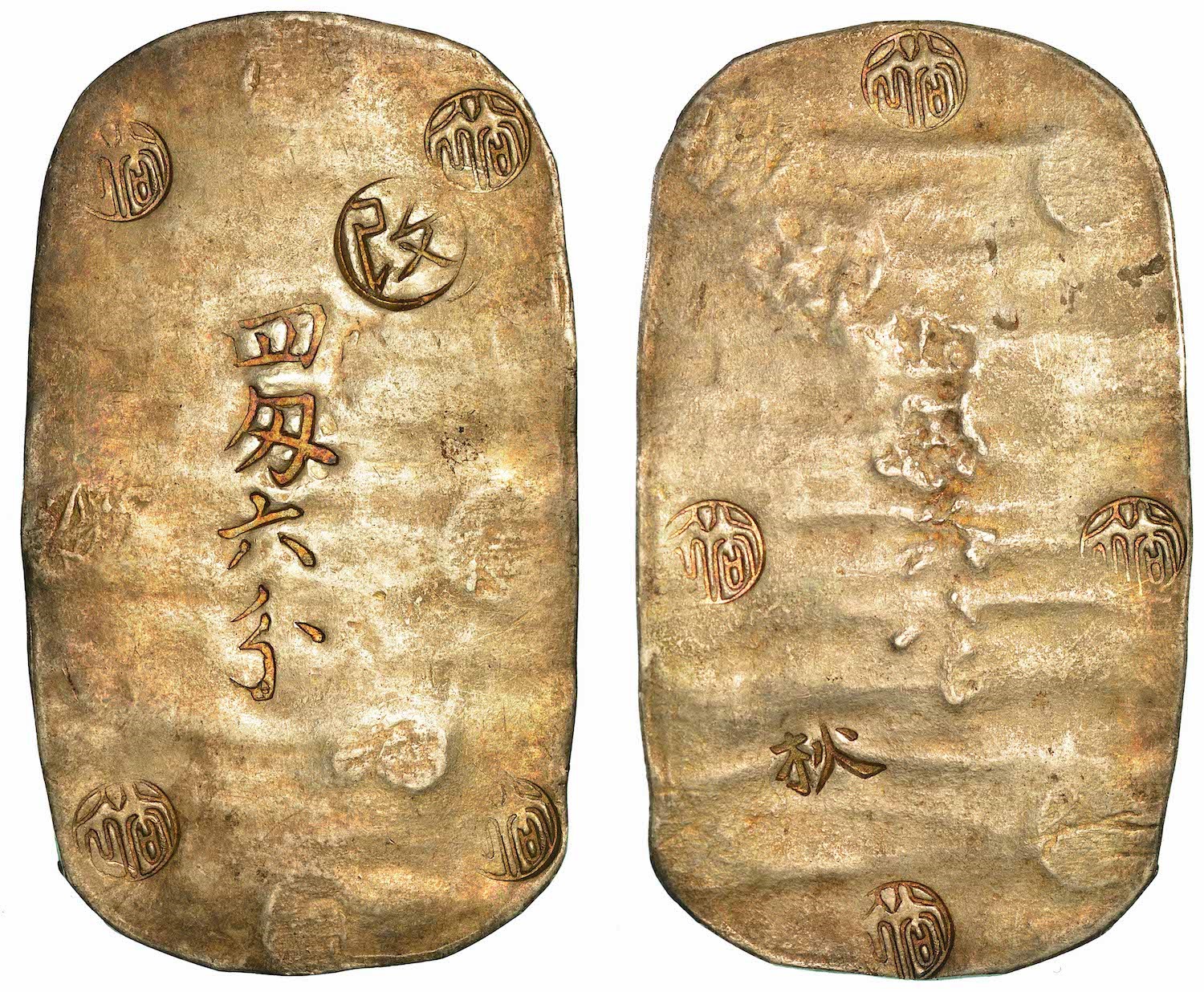 Ideogrammi e contromarche. R/ Ideogrammi e contromarche. KM# 10. g. 17,12. Misure mm. 64,97x37,55. Arg. q.SPL